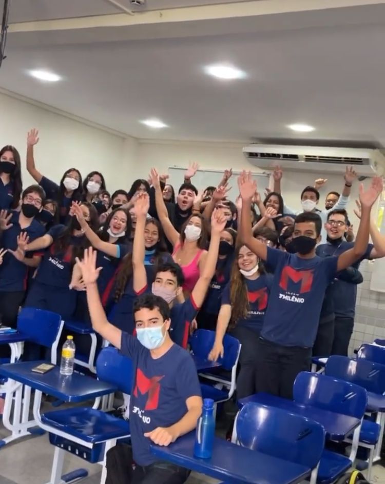 A ex-BBB Larissa Tomásia começou a quarta-feira (6) de forma muito animada. Ao lado dos alunos do Colégio Terceiro Milênio, em Limoeiro, interior de Pernambuco, onde estudou quando adolescente, a sister agitou geral e roubou a cena.