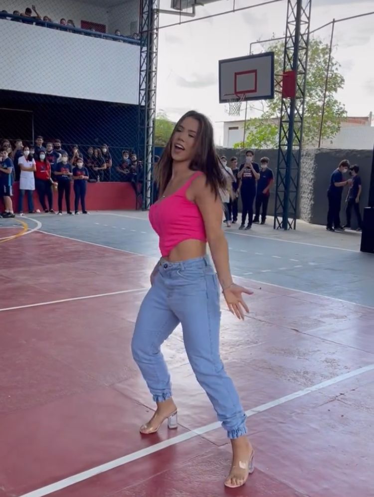 “Eu tive que trocar de roupa porque agora eu vou no meu antigo colégio. Eu recebi o convite e é claro que eu não poderia deixar de ir, e aí o treino vai ficar pra mais tarde, vocês vão ter que esperar”, brinca a ex-BBB em seu perfil do Instagram.