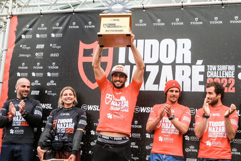 NAZARE, PORTUGAL – FEBRUARY 10: Lucas Chianca of Brazil wins the Best Perfomance at the TUDOR Nazaré Tow Surfing Challenge presented by Jogos Santa Casa on February 10, 2022 in Nazare, Portugal. (Photo by Laurent Masurel/World Surf League)