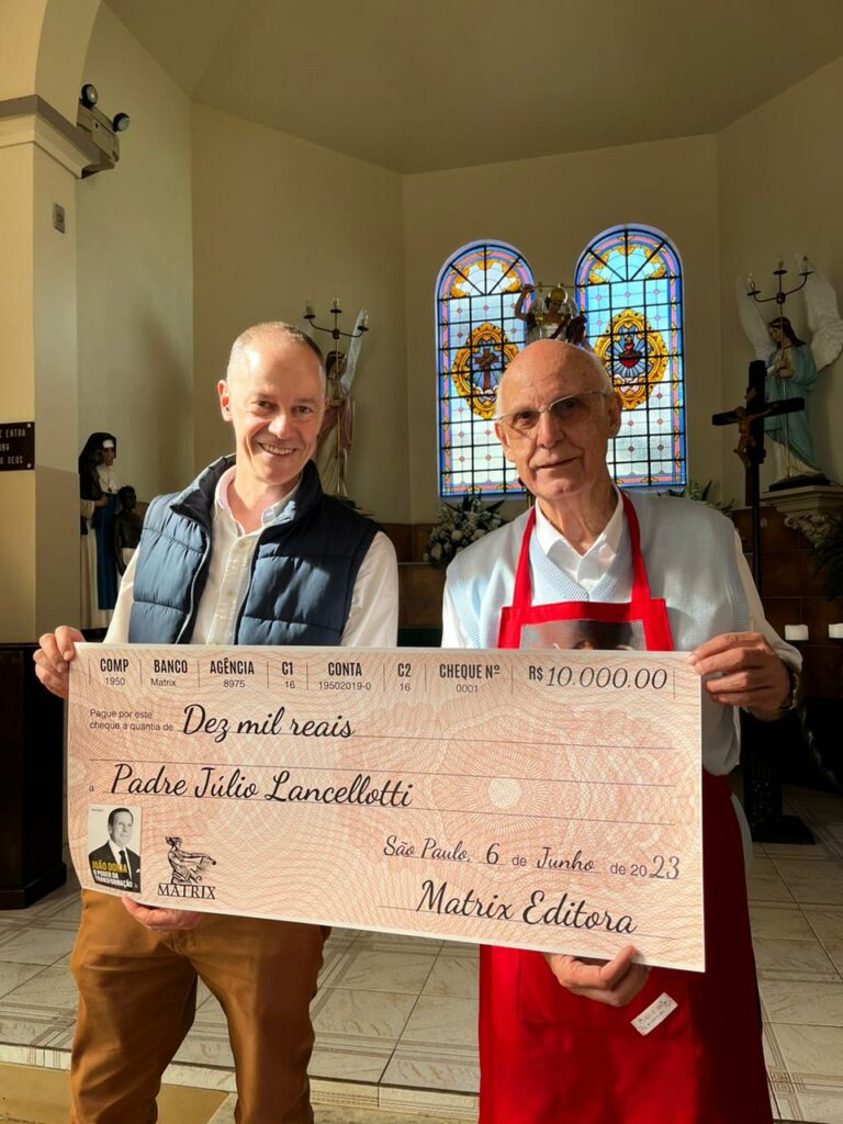 A entrega simbólica do montante foi realizada por Paulo Tadeu, fundador da Matrix Editora, e James Rubio Junior, representante de João Doria. O gesto solidário do ex-governador demonstra seu compromisso com causas sociais e seu engajamento em ajudar os mais vulneráveis.