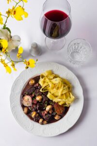 O menu, cuidadosamente elaborado por Richard, é uma viagem sensorial pela França, com pratos que vão desde a tradicional sopa de cebola gratinada, Soupe a l’Oignon, até inovações como o Porc Wellington, uma reinterpretação do clássico Beef Wellington, adaptado à culinária local com ingredientes regionais. Cada prato reflete a paixão do chef pela culinária francesa, prometendo uma experiência gastronômica sem igual.