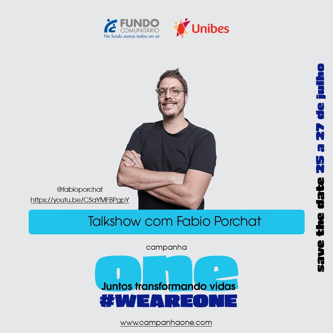 - Entre os dias 25 e 27 de julho, entrará em vigor a campanha One, promovida pela entidade filantrópica Fundo Comunitário, com Porchat