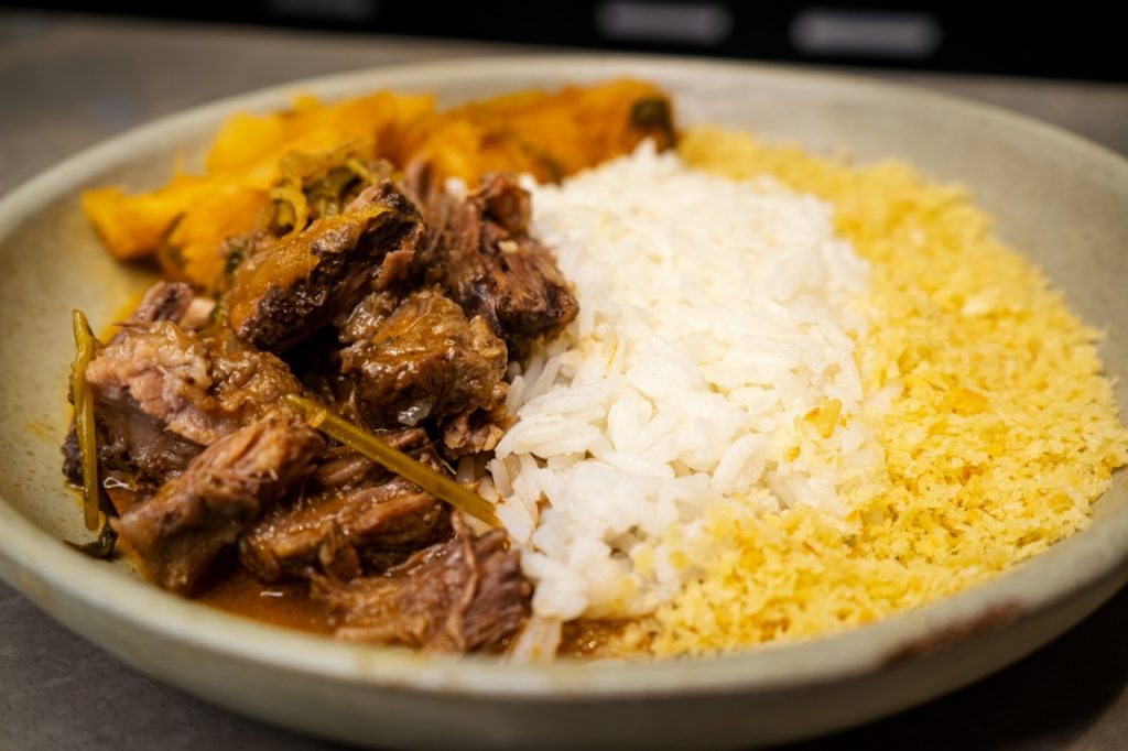 Rabada na mostarda e vinho: foi feita na base da mostarda e vinho para dar um ar mais sofisticado e cítrico combinando com o limão que vai na rabada