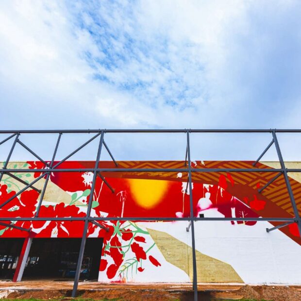 O mural, que está sendo pintado à mão, é uma homenagem à cultura goiana e será composto por uma paleta de cores vibrantes, indo do vermelho intenso ao dourado. Elementos icônicos de Goiânia, como o flamboyant, árvore símbolo da cidade, e o pôr do sol goiano, ganham forma em uma narrativa visual que celebra a natureza e a força do estado. Os trançados que remetem à palha destacam o artesanato goiano, valorizando o trabalho manual e os costumes locais.