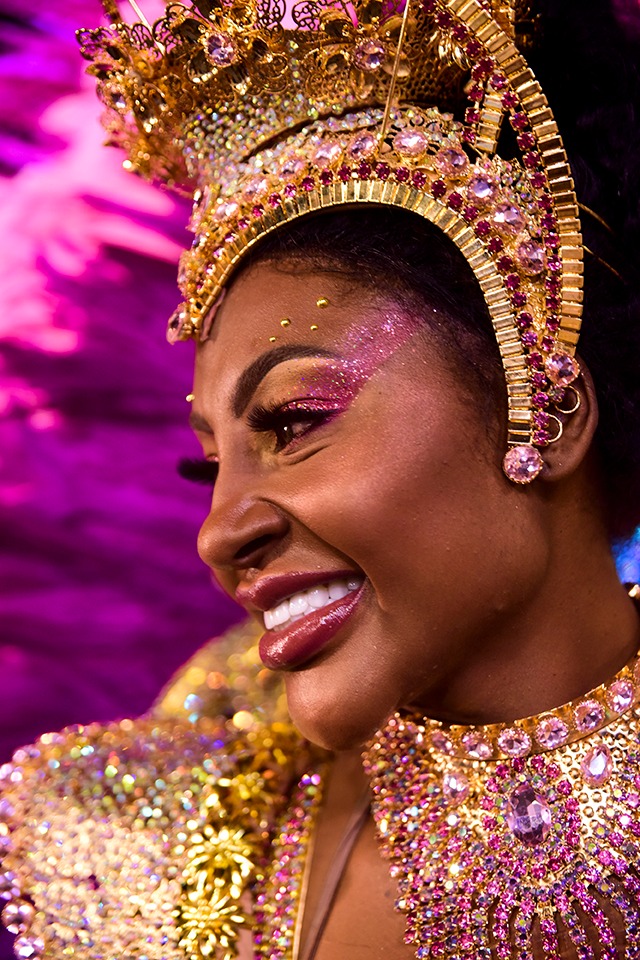 Ísis passou pela avenida vestida com uma fantasia banhada a ouro 18k, com cristais Swarovski, 500 faisões chicotes, dois mil faisões albinos e 100 faisões inek, criada pela famosa estilista de alta costura, Antara Gold.