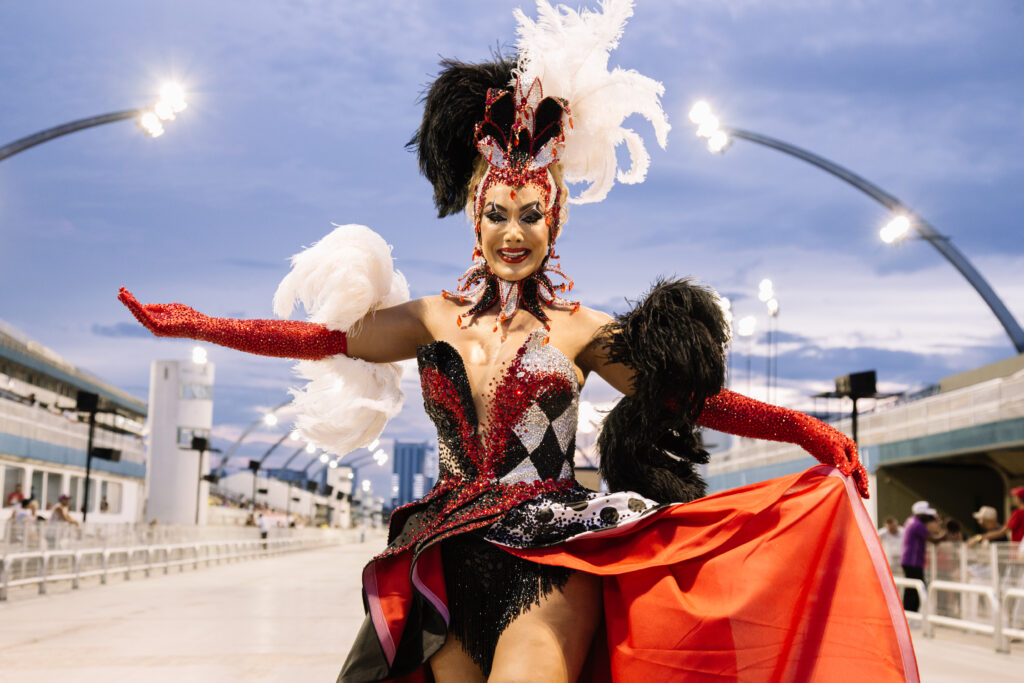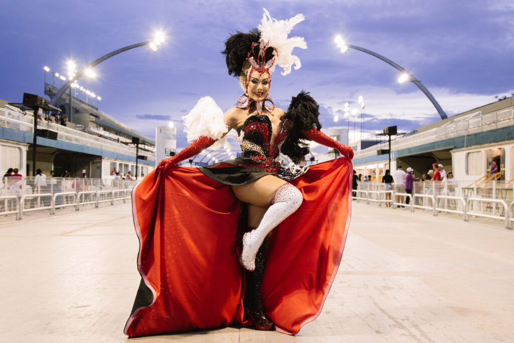 “Estou vivendo um momento mágico na minha história de vida e no Carnaval como a primeira mulher trans na frente da bateria e, para homenagear meus ritmistas e minha comunidade, que me receberam tão bem como rainha oficial, sempre estarei belíssima, para representar a Ritmo Responsa e a escola”, afirma a rainha que empolgou o público presente e esbanjou simpatia com sua beleza, graça e samba.