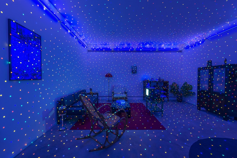 Obras presentes na Galeria Yayoi Kusama: Aftermath of Obliteration of Eternity (2009), espelho, madeira, plástico, acrílico, LED, alumínio. I’m Here, But Nothing (2000), adesivos, lâmpadas fluorescentes ultravioletas, mobília, objetos domésticos, dimensões variáveis.