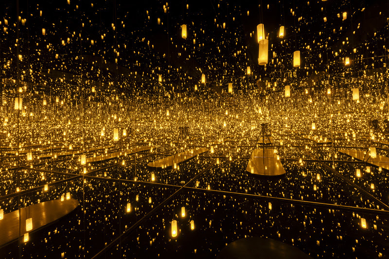 Aftermath of Obliteration of Eternity (2009) parte dos princípios da filosofia de auto-obliteração pensada pela artista, do desejo de negar a sua existência se unindo ao infinito, como parte de um todo. Nesse ambiente imersivo, a proposta é que o espectador seja conduzido a um universo completamente diferente do exterior, um cosmo transcendental. O aspecto da obra nos remete a uma miragem contínua iluminada por lanternas, que vai se esmaecendo à medida em que a nossa percepção se afasta da realidade. Na tradição japonesa, esse tipo de iluminação está ligado à espiritualidade, uma conexão com os ancestrais.