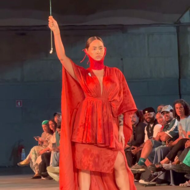 O desfile apresentou peças que destacam a identidade e o artesanato indígena, com foco na sustentabilidade e na valorização cultural. Isabelle desfilou com criações da marca, que busca promover a riqueza das tradições indígenas por meio da moda contemporânea. A produção contou ainda com maquiagem e grafismos feitos pelo artista Jorel, além de uma trança imponente.