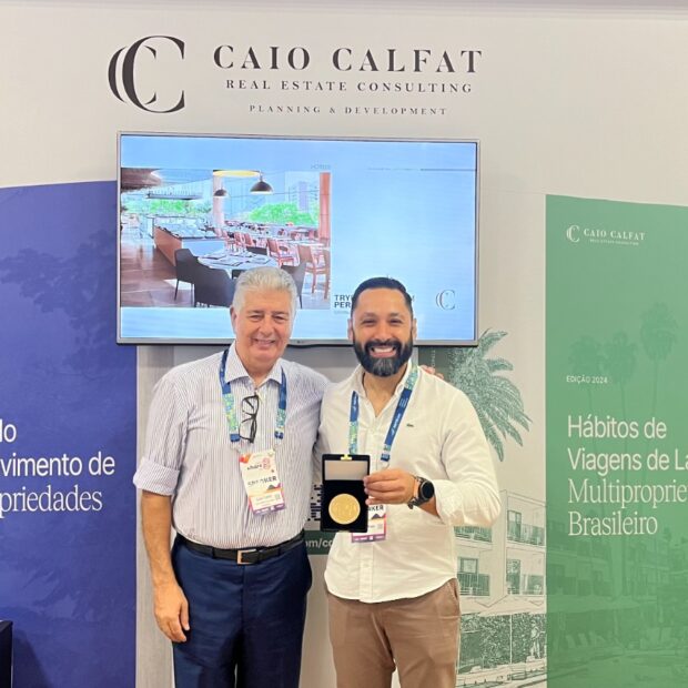 O reconhecimento pelo trabalho desenvolvido não parou por aí. Durante o ADIT Share 2024, Jeferson Braga foi agraciado com uma medalha de ouro entregue pela Caio Calfat Real Estate Consulting, em reconhecimento à sua contribuição para o desenvolvimento do mercado de multipropriedade. Recentemente, a OwnerInc patrocinou o relatório “Cenário do Desenvolvimento de Multipropriedades no Brasil”, que traz informações importantes para o setor e foi lançado no seminário.