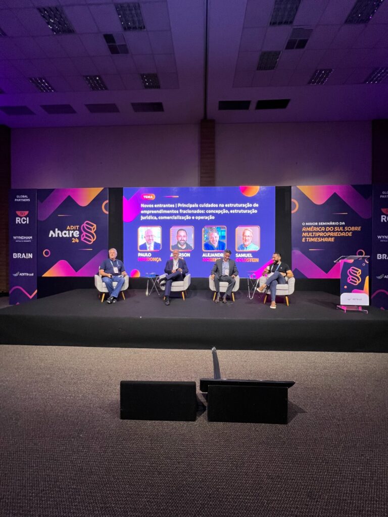Durante o evento, Jeferson Braga participou do painel “Novos entrantes – Principais cuidados na estruturação de empreendimentos fracionados: concepção, estruturação jurídica, comercialização e operação”. Ao lado de Paulo Mendonça, advogado da Marrey Mendonça Advogados, Alejandro Moreno, CEO da Trul Hotéis, e Samuel Goldstein, CEO da Eindon Empreendimentos, que atuou como moderador, Braga compartilhou sua experiência e insights sobre o mercado de multipropriedade.