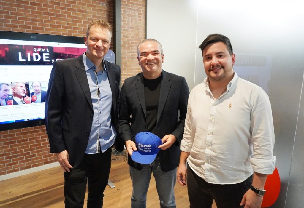 Para marcar a estreia da nova fase, que também contempla um novo estúdio, com sede no prédio da Acate (Associação Catarinense de Tecnologia), a dupla recebeu o empresário e presidente do Lide SC, Delton Batista.