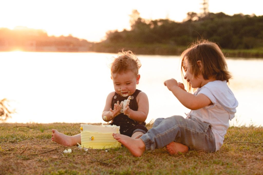 O menino ganhou um bolinho e se lambuzou todo ao lado do irmão José. A ocasião rendeu momentos inesquecíveis dos quatro e belas imagens.