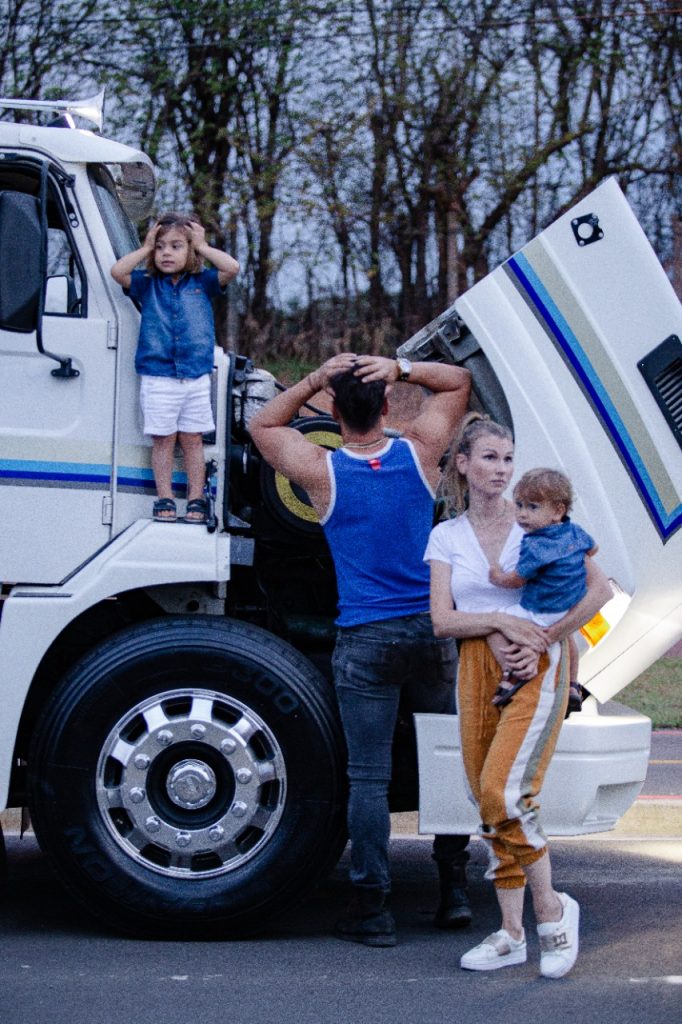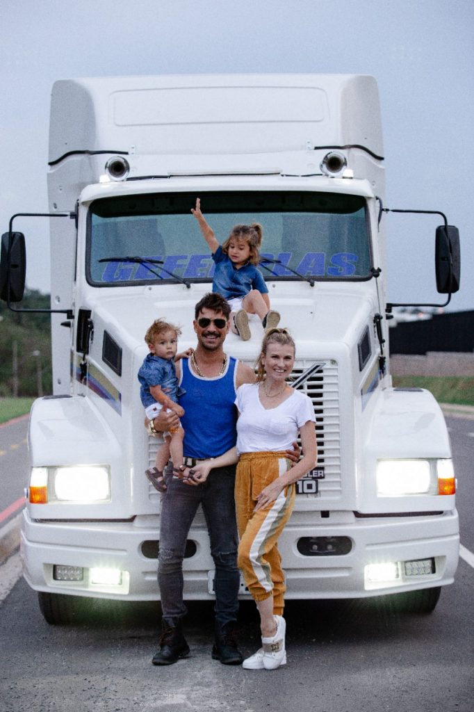 Ao lado da esposa, Karoline Kleine, e dos filhos, José e Eduardo, o ator posou dentro de um caminhão. Aliás, os meninos adoraram participar do ensaio. “Desta vez, não é uma cilada, Bino! Relembrando Antônio Fagundes e Stênio Garcia, esta dupla de atores que o Brasil ama, fizemos um mix do ‘Carga Pesada’ com a ‘Grande Família'”, conta Julio, fazendo referência aos extintos programas de TV.