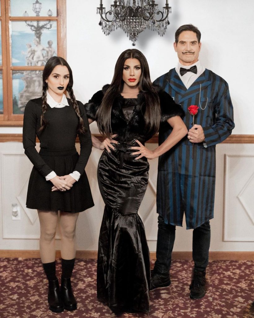 Com sua amiga Lucia Clyn vestida de Wandinha, seu marido Todd Kardasha de Gomez e Karen de Mortícia, formaram a ‘Família Addams’ e chamaram atenção pela forma divertida de irem ao show, levando a sério o Halloween. O trio tirou fotos com diversos fãs de Karen Kardasha e esbanjou simpatia com todos que se aproximavam.