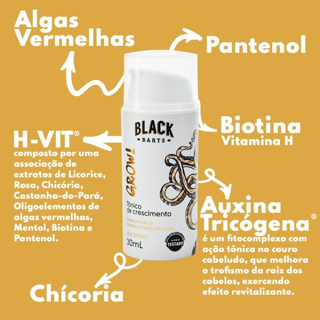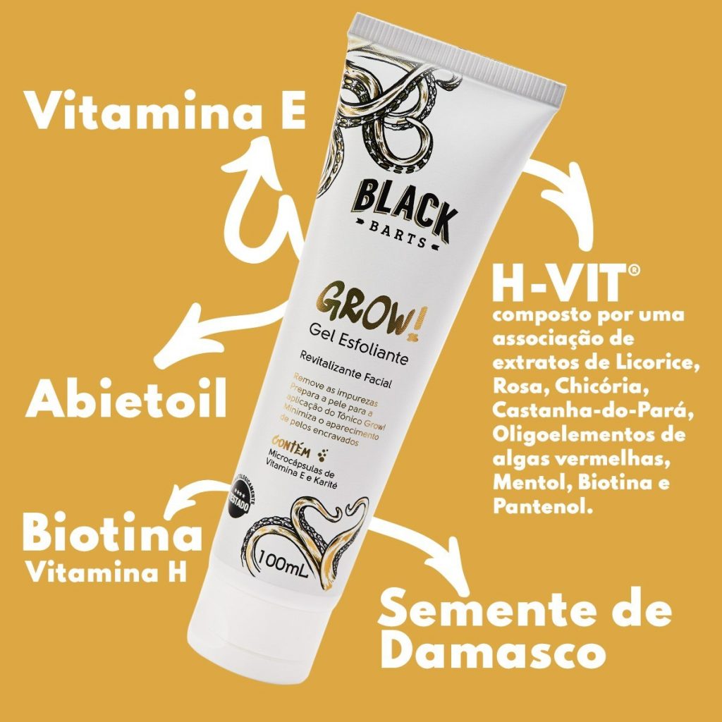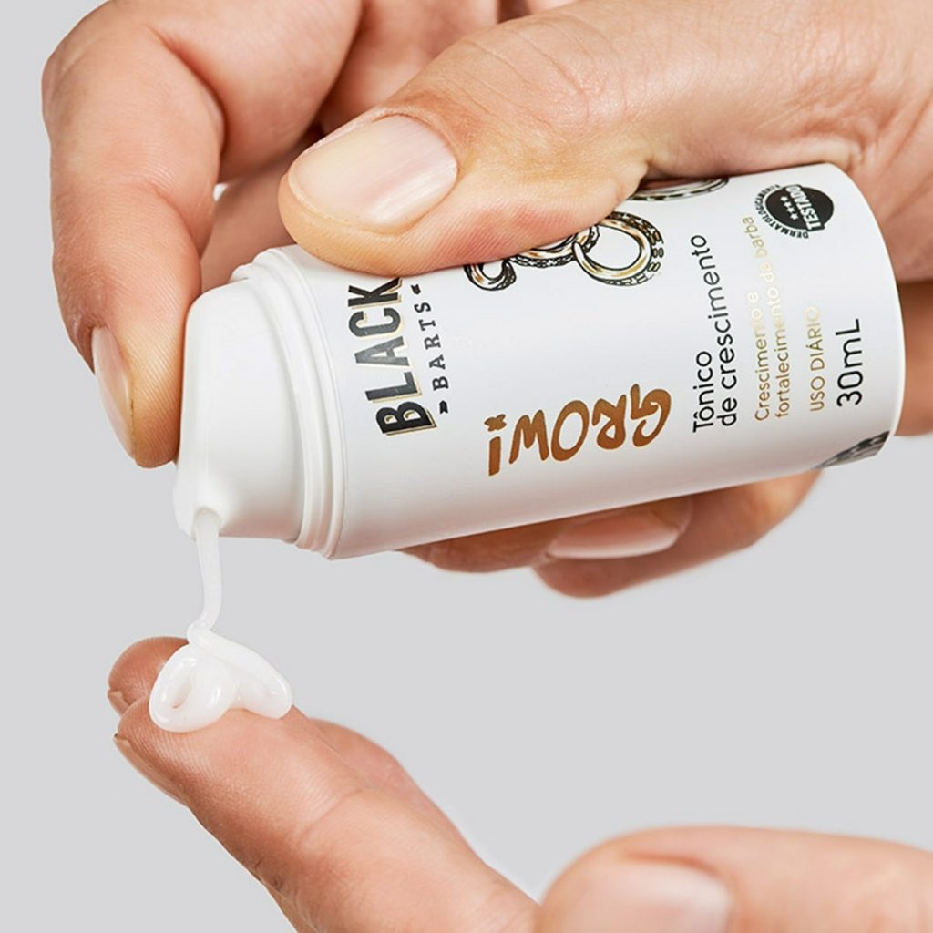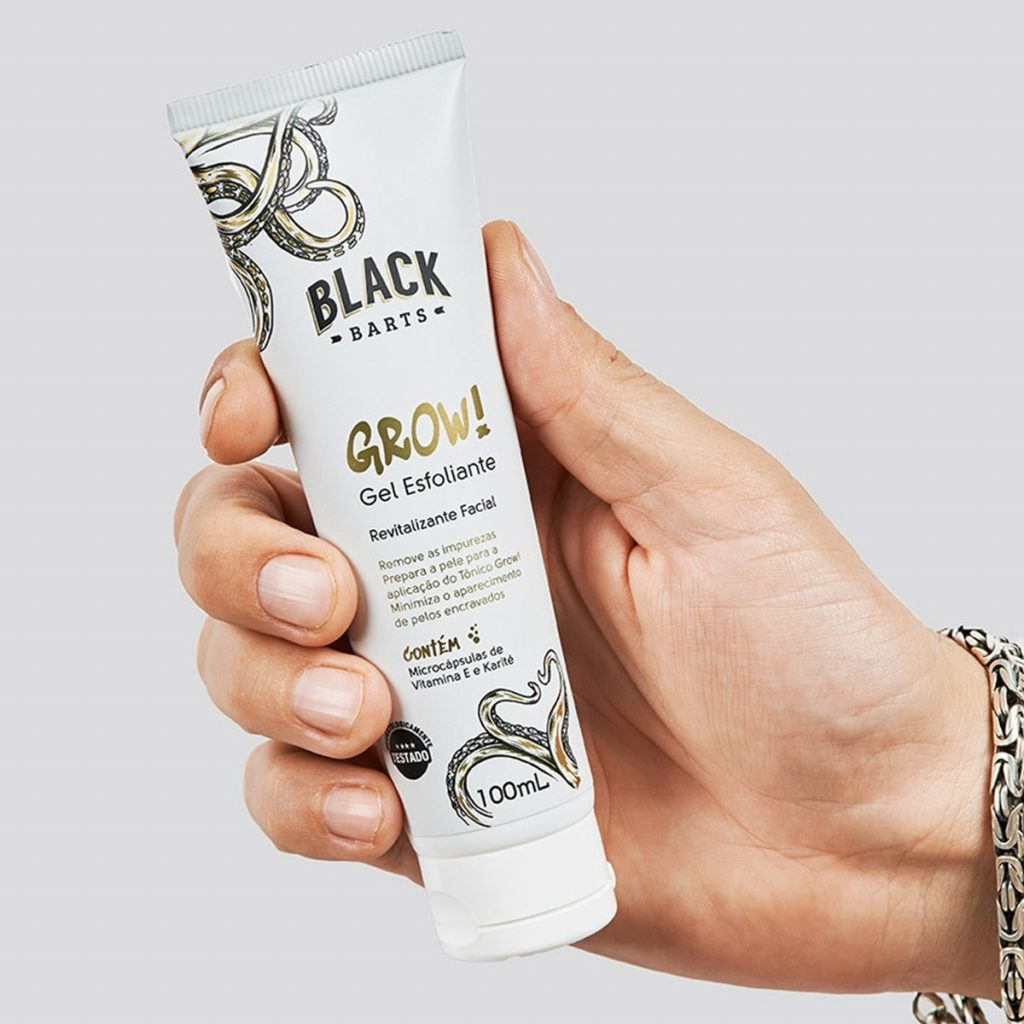 “O Grow! Esfoliante Revitalizante Nanotecnológico da Black Barts conta com uma ação poderosa que ajuda na renovação celular, remove as células mortas e prepara a pele para o Tônico de crescimento de barba, garantindo a eficácia da absorção cutânea, estimulando o desenvolvimento de uma pele com brilho, maciez e viço”, explicou Fernando.