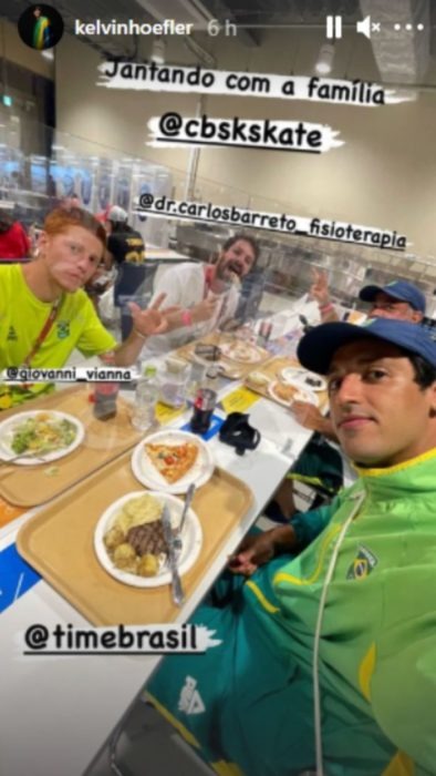 Horas depois da prova, Kelvin postou um stories com outras pessoas da equipe com a legenda: “Jantando com a família”, marcando a conta da CBSK.