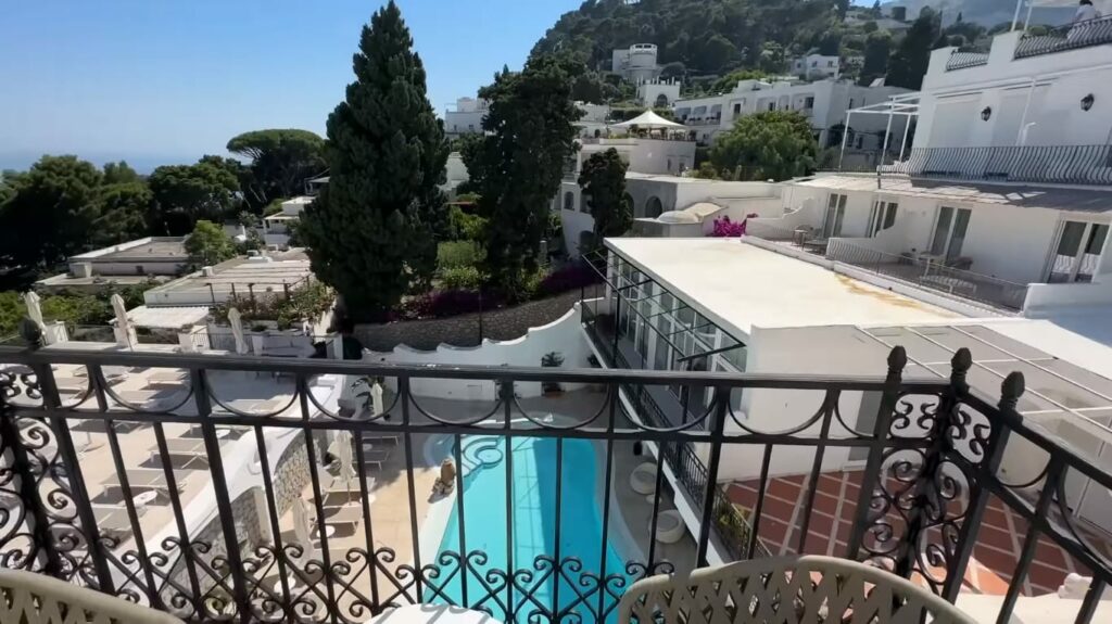 Por ser verão na Europa, a ilha estava bastante movimentada e com muitos passageiros na marina aguardando o transfer para o hotel, motivo que fez o trio mudar o meio de transporte e optar pelo funicolar, um trem que conecta a Marina ao Centro de Capri em apenas cinco minutos. No trajeto, Lucas foi narrando os perrengues do percurso, mostrando a cantora carregando a própria mala na escadaria.