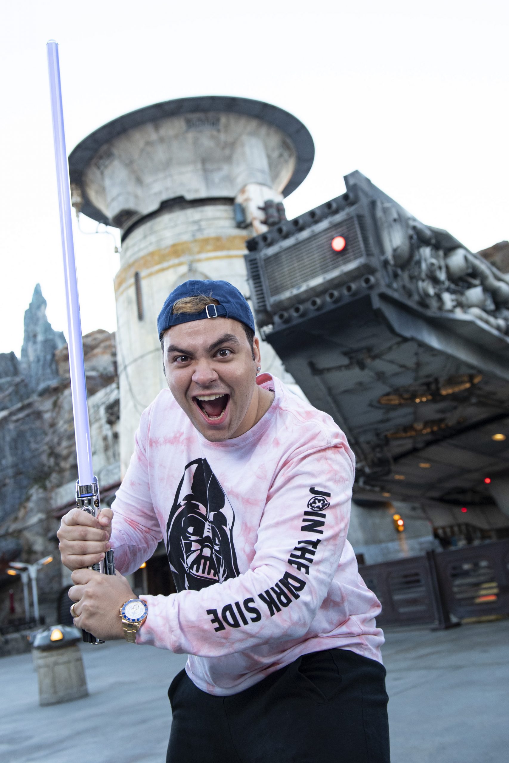 “Voltarei dessa viagem com uma bagagem cheia de inspirações. Sempre fui fã de Star Wars. Tenho, inclusive, os sabres de luz oficiais do Kylo Ren e da Reu Lightsaber! Está sendo incrível apresentar pela primeira vez esse mundo mágico que é o universo da Disney pro meu filho, ao lado da minha esposa.” ? comenta o artista.
