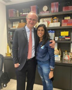 Ela procurou o serviço de pronto atendimento, onde foi submetida à drenagem de hematoma e descompressão cerebral de urgência. Infelizmente, ficou para resolução prévia, mas ficou com o movimento do lado esquerdo debilitado, além de perder a visão periférica esquerda. “Mesmo grávida e com muitos riscos, conseguimos fazer o parto através do acompanhamento com o obstetra e com o Dr. Feres. Após algumas semanas, iniciamos o tratamento com uma embolização prévia pré-operatória, seguido da microcirurgia para a retirada da MAV”, conta Débora