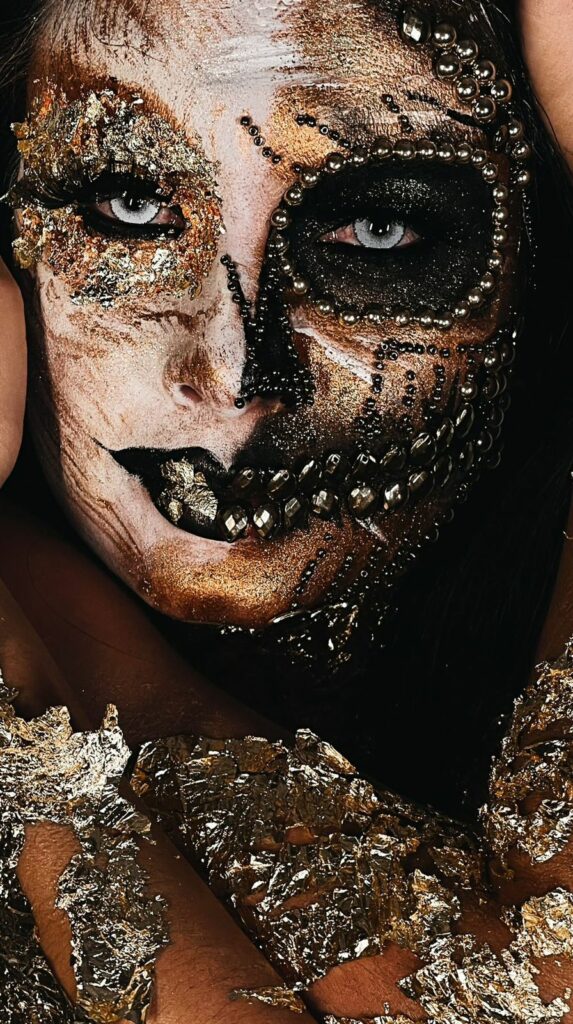 O halloween é o momento certo de esbaldar na maquiagem, as paletas principais de cores marcantes como tons variáveis de preto, roxo, laranja, cinza entre outros até mesmo chegar ao vermelho sangue que não pode faltar.