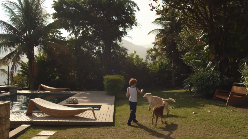 Ao visitar a casa pela primeira vez, Paula conta que foram se encantando com cada ambiente, até que chegaram ao jardim e o Mateus olhou para ela e perguntou: “onde é que a gente assina?”. O jardim, além de ser o lugar que garante o entretenimento e a diversão da família e dos animais, é o local que segundo o ator, conseguiram levar sustentabilidade à casa, através dos painéis de energia solar, deck reciclado e um ambiente onde ele mesmo faz compostagem com os resíduos da cozinha.