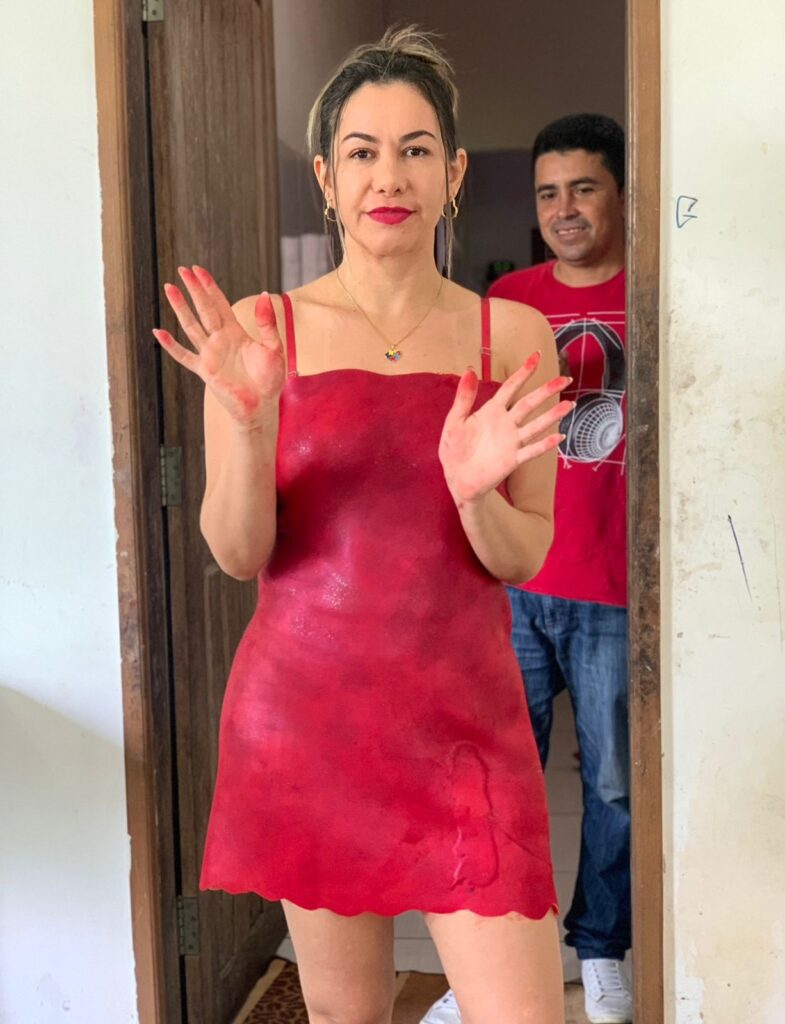 Conhecida por transformar qualquer doce em um objeto realista, a confeiteira Mayara Carvalho impressionou seus seguidores ao criar um vestido feito de bolo para usar em uma ocasião para lá de especial. A invenção feita pela criadora de conteúdo foi para surpreender o marido e comemorar mais um ano do seu casamento. O vídeo publicado nas redes sociais da influenciadora atingiu quase 3 milhões de visualizações no Instagram.