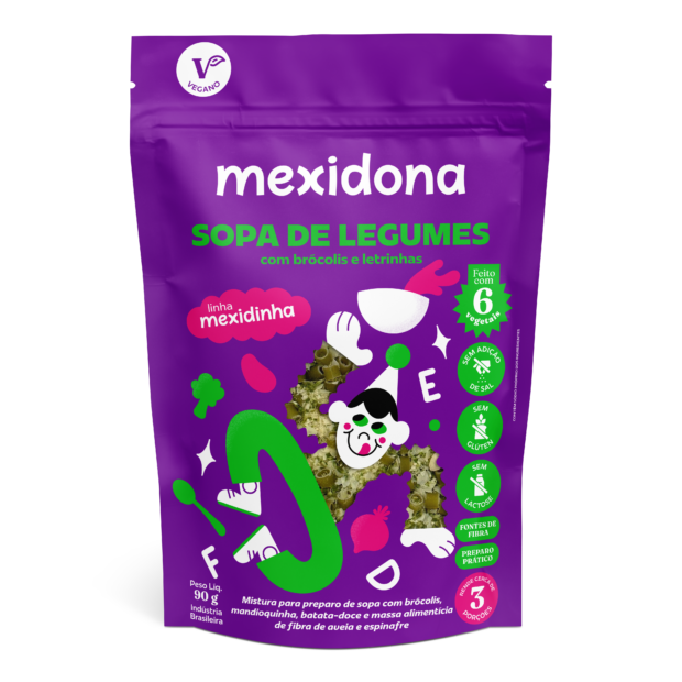 A Mexidinha chega com duas opções encantadoras: a “Sopa de Legumes” e a “Sopa de Letrinhas”, ambas são uma celebração de sabores e nutrientes, feitas com uma seleção de vegetais e macarrão em formato de letrinhas. Cada receita foi cuidadosamente criada para oferecer uma alimentação equilibrada, rica em sabor e cheia de saúde, auxiliando no desenvolvimento da criança atendendo às exigências dos pais contemporâneos por opções mais naturais e benéficas para seus pequenos.