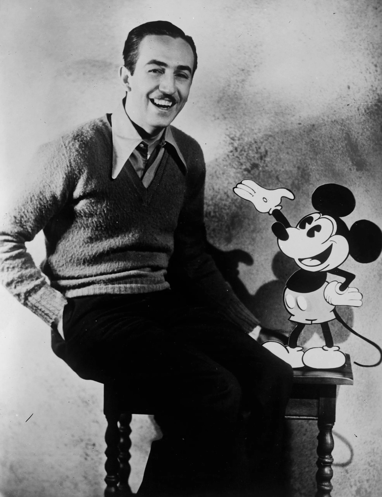 Criador e criatura, Walt Disney com seu clássico personagem, Mickey Mouse