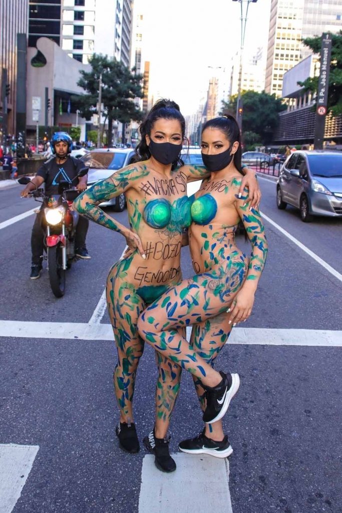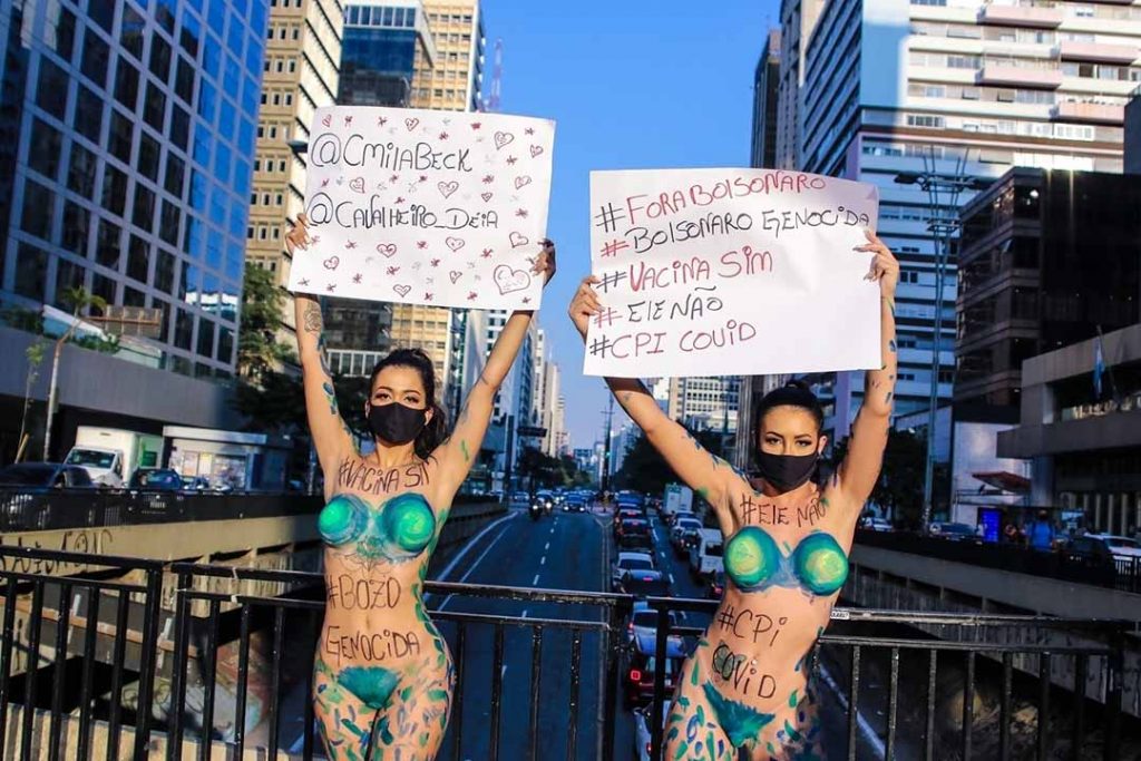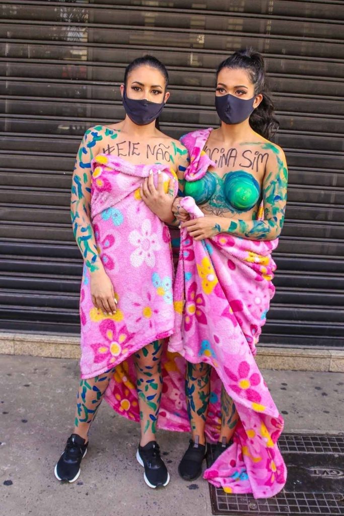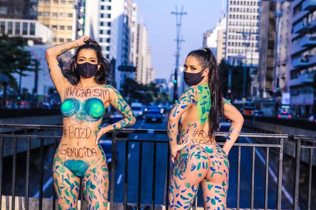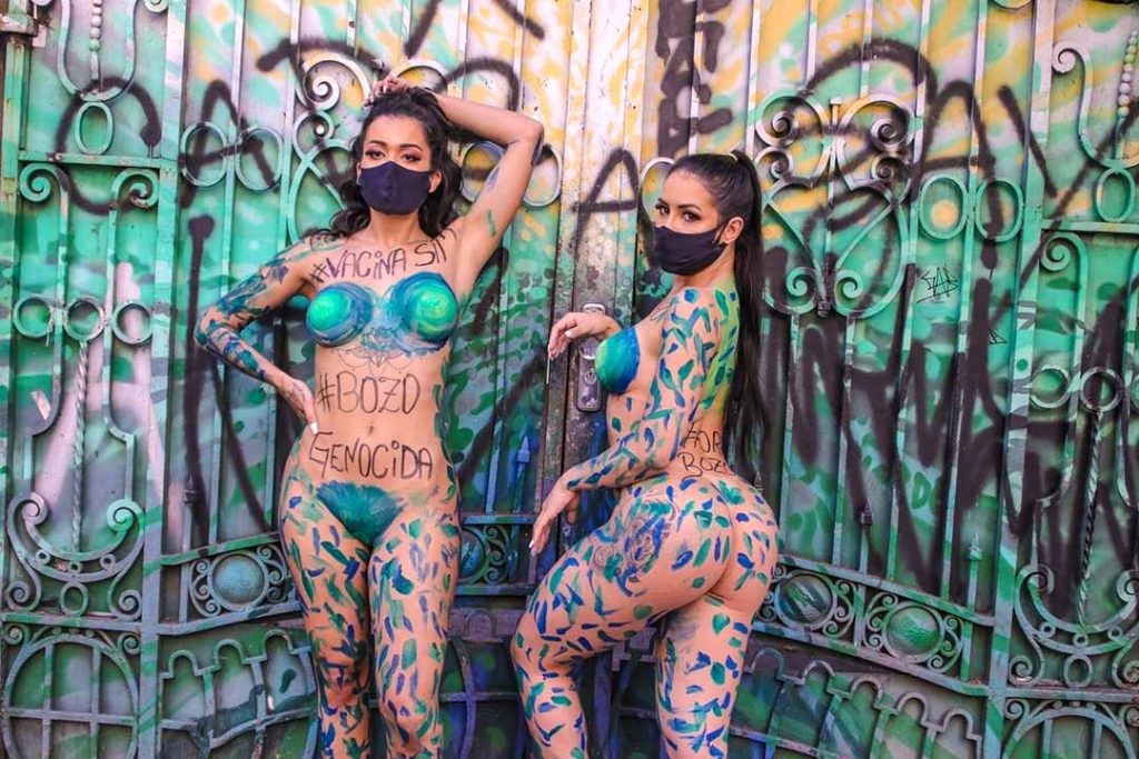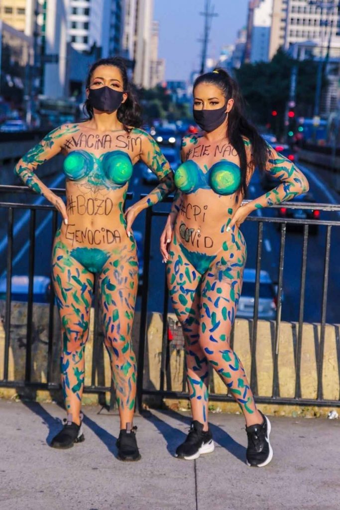 “Decidimos pintar nossos corpos nas cores da bandeira do Brasil para representar a nação e não vemos a hora de todo o povo brasileiro ser vacinado”, comentou Deia e Camila.