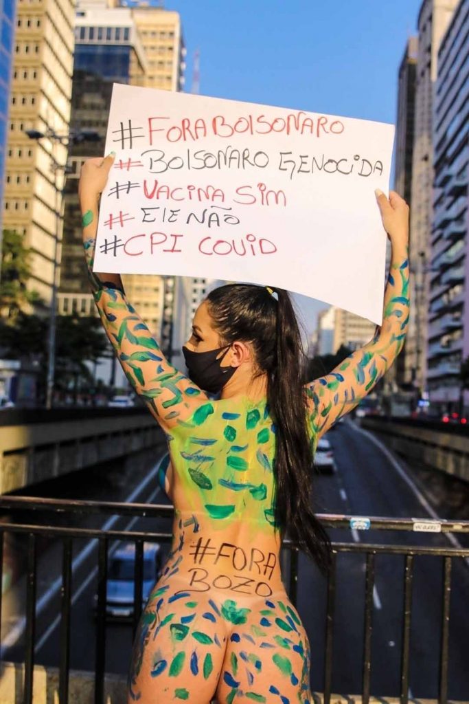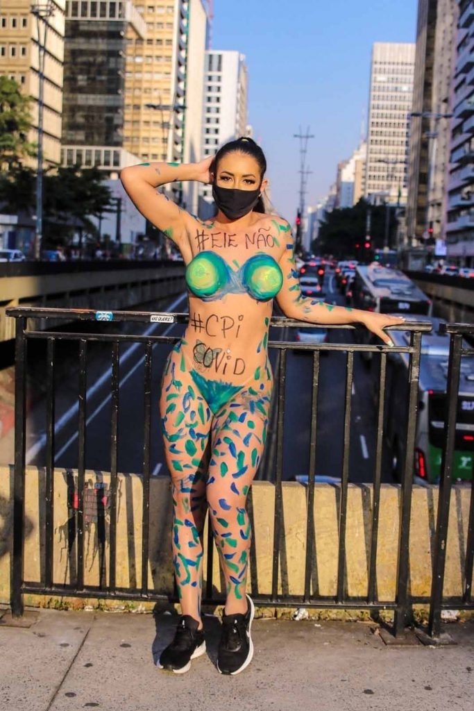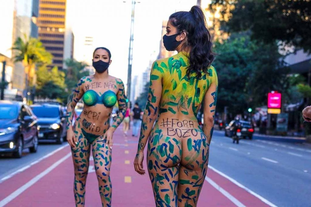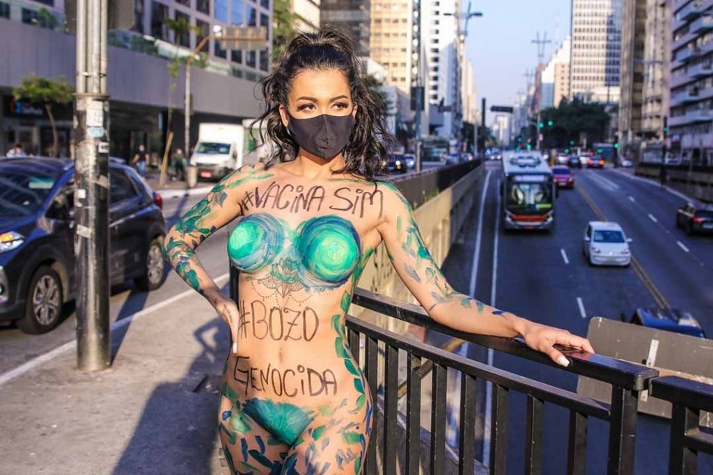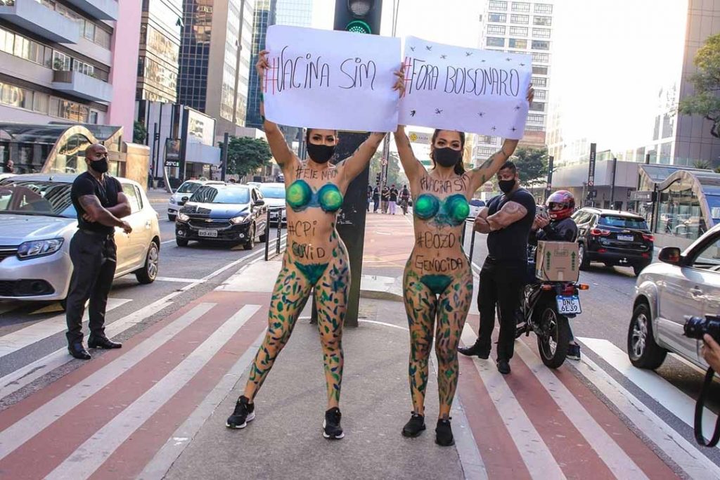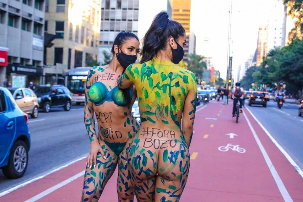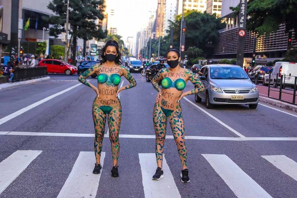 “Decidimos pintar nossos corpos nas cores da bandeira do Brasil para representar a nação e não vemos a hora de todo o povo brasileiro ser vacinado”, comentou Deia e Camila.