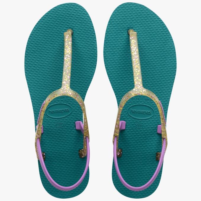 Outros itens são rasteirinhas. Quem quer fugir um pouco dos chinelos para ir em um evento de verão, mas com um sapato diferente, o indicado é a “Rasteira Havaianas You St Tropez Glow”, que é a cara das gringas, ou a “Rasteira Havaianas You Paraty Fun”, que traz muito conforto e você pode até entrar na água que não vai sair do pé.
