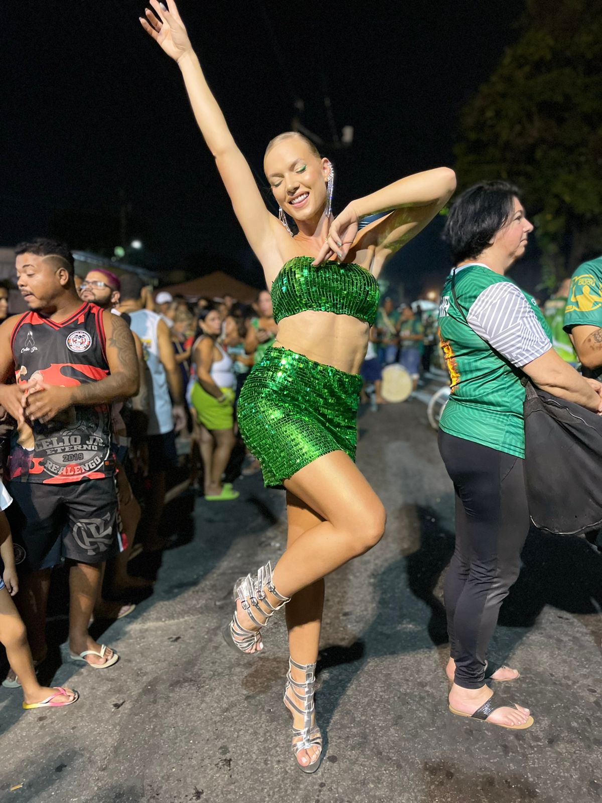 Para fazer bonito na Sapucaí, ela faz aulas de samba diariamente.