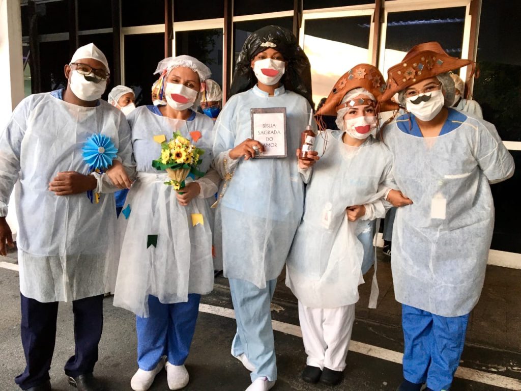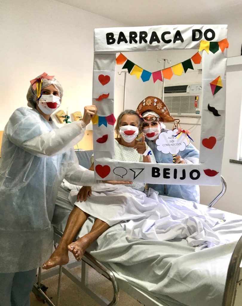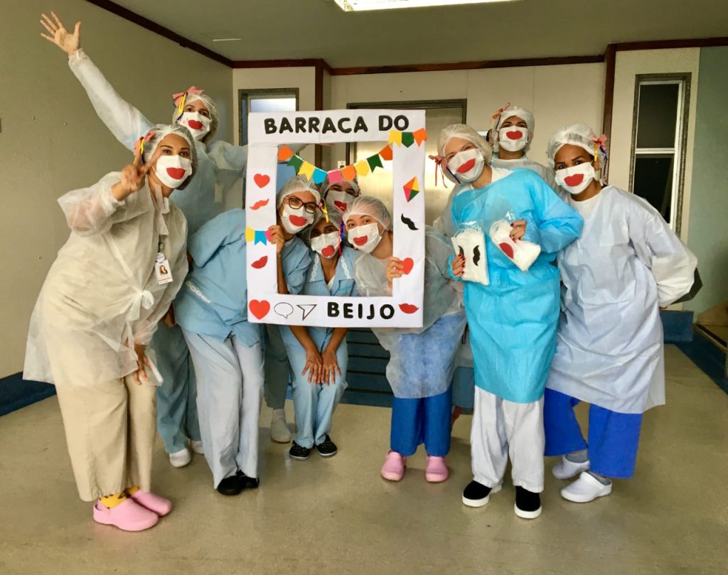 “Os pacientes estão em isolamento, longe de seus familiares. A Covid é uma doença que gera extrema ansiedade. Então, nós não medimos esforços para ofertar amor, carinho e alegria, tentando amenizar as coisas ruins que a pandemia nos traz. Mesmo sem festa, nem aglomeração, é motivo para gente promover um pouco de leveza no ambiente hospitalar, trazendo lembranças positivas das festas juninas” – comentou Claudiana Pereira, Coordenadora das Enfermarias, natural de Jequié/BA e fã de São João.