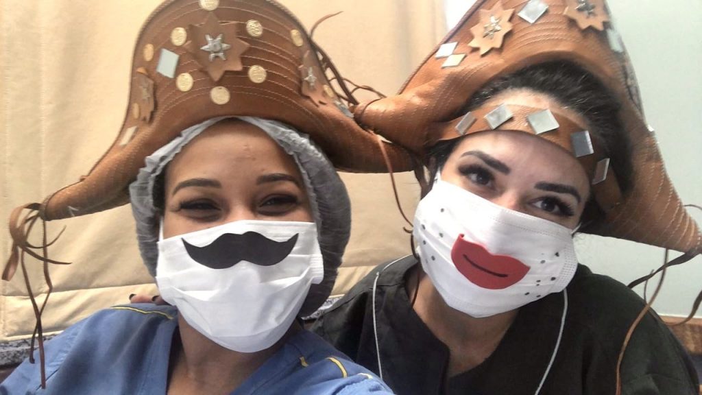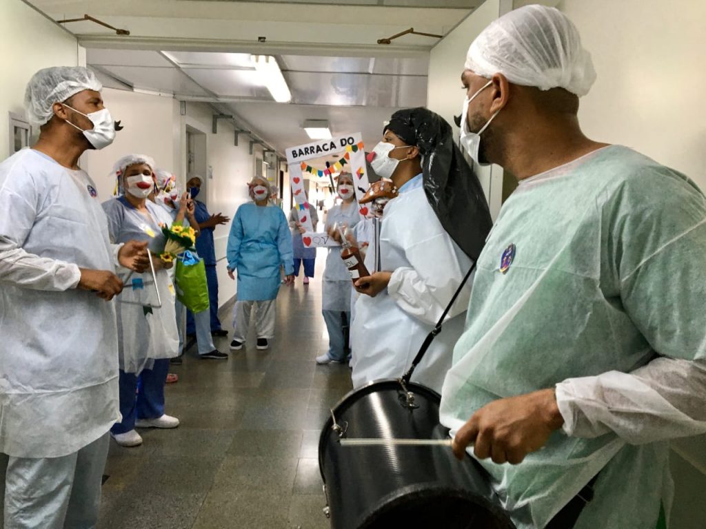 Os profissionais da saúde se caracterizaram com adereços descartáveis, enfeitando as máscaras e toucas. A equipe da musicoterapia percorreu os leitos das enfermarias, levando música junina,tocada ao vivo, e embalando o forró dos corpos cansados da luta contra a Covid-19. O clima de humanização é característico no Hospital Espanhol que realiza ações frequentes para cuidar das emoções à flor da pele.
