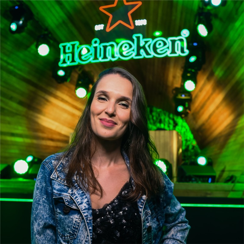 Beatrice Jordão, gerente-sênior de marketing da marca Heineken no Brasil, destaca o compromisso da cervejaria com a sustentabilidade e a ressignificação de materiais. A iniciativa faz parte do Heineken Green Your City, que busca promover festivais mais verdes e conscientização sobre a reciclagem.