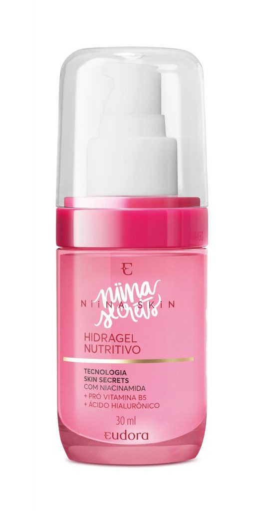Garantindo o resultado de uma pele macia, suave e viçosa, a linha Niina Skin apresenta o Hidragel Nutritivo, desenvolvido com tecnologia skin secret, com a potente tecnologia skin secrets combinada com o ácido hialurônico e a pró vitamina B5 – poderoso pantenol -, faz com que o produto renove, melhore e uniformize a textura da pele. Ele é indicado também para preparar a pele pré maquiagem, melhorando o acabamento.
