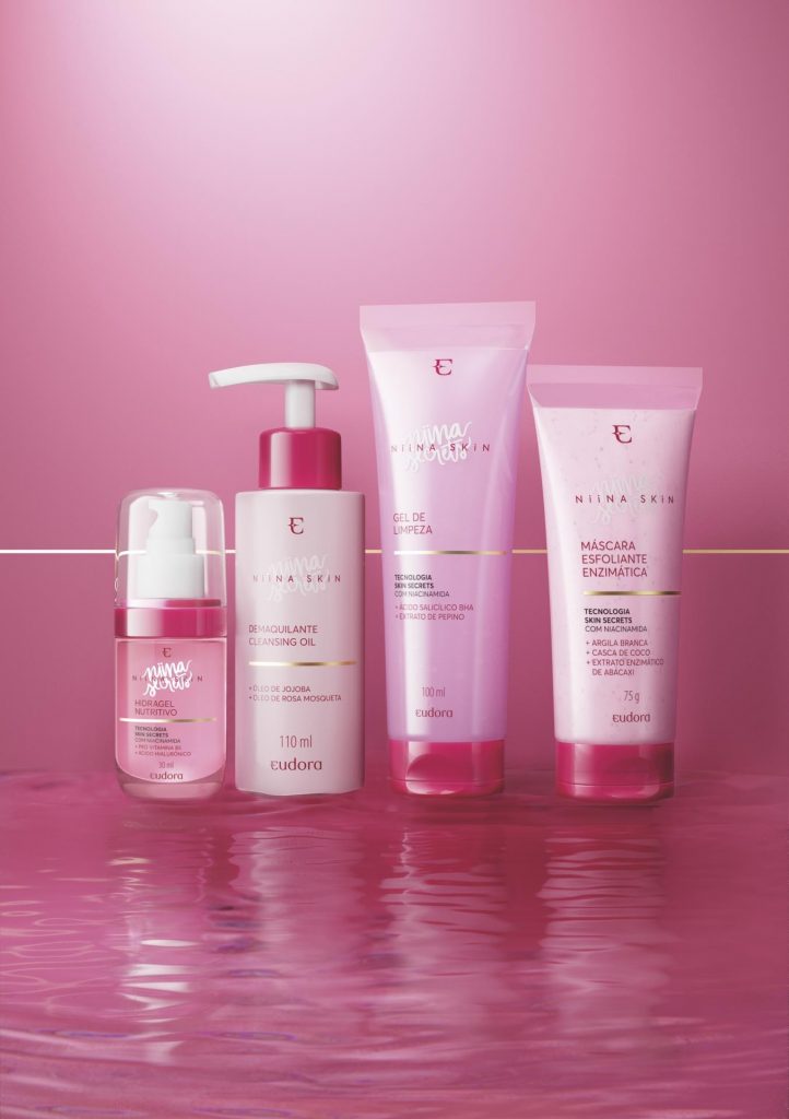 Idealizada em cocriação com a influenciadora digital. Agora, Niina e Eudora ampliam sua atuação com o lançamento da linha Niina Skin, com quatro produtos que prometem revolucionar a limpeza e hidratação de todo tipo de pele, incluindo as mistas e oleosas.