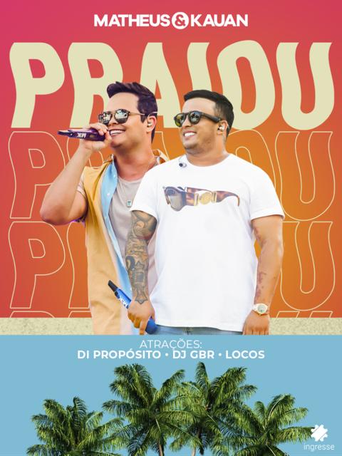 Vai dar praia em São Paulo e Matheus & Kauan entram com a trilha sonora. A dupla surpreende mais uma vez e transforma o Parque do Ibirapuera, símbolo da capital paulista, em litoral! Os irmãos encabeçam o festival Praiou, evento com muito funk, pagode, eletrônico e os sucessos da dupla que conquistou o Brasil!