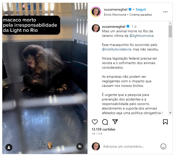 O presidente da ONG afirma ainda que tem cobrado a responsabilidade da empresa pelo impacto que gera sobre esses animais. A causa tem ganhado repercussão na capital carioca, com apoio de personalidades como a apresentadora Xuxa, que compartilhou um dos casos registrados cobrando soluções:
