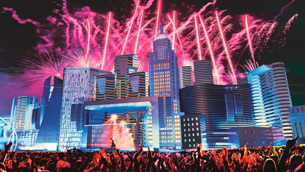 Será um espetáculo que vai sincronizar luz, música, fogos de artifício e transmissão ao vivo nos telões, e vai parar a nova Cidade da Música e o público vai se arrepiar com um momento emblemático, que se conecta diretamente com a origem de tudo. O ano de 1985 na abertura dos portões do Rock in Rio.