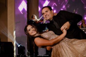 A debutante dançando com o padrinho Marcus Vinicius Alves Mendes