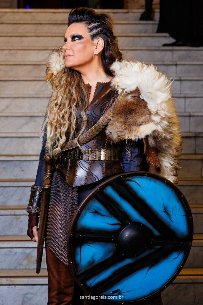 A aniversariante estava com um look incrível digno de filmes e séries de TV. A roupa foi inspirada na personagem principal de “Vikings”, a guerreira Lagertha. O figurino foi desenvolvido pelo renomado Bruno Oliveira, figurinista da Cláudia Raia que é super conhecido por grandes produções feitas para Carnaval.