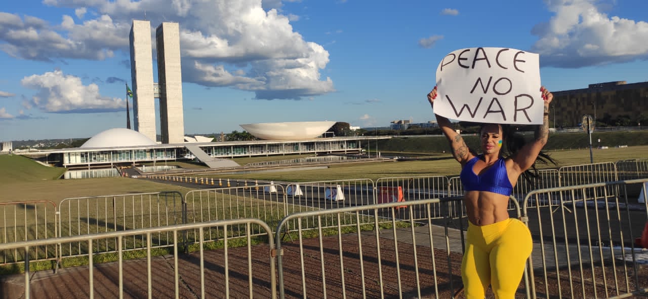 Analice Nicolau Vanessa Ataídes, faz protesto em frente à embaixada russa contra a invasão da Ucrânia 12/04/2022 12h00