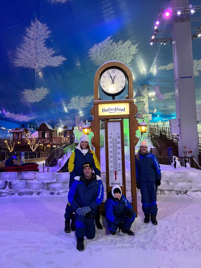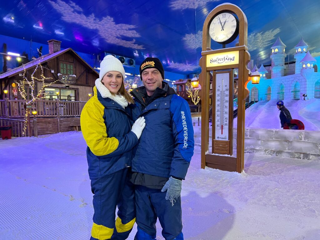 “O Alezinho conheceu a neve no ano passado, onde esquiou pela primeira vez. Eu fiz questão de trazê-lo no Snowland para curtir novamente e também praticar o esporte. Estou impressionada, ele não esqueceu. Está melhor que o pai e a mãe”, brincou a apresentadora.