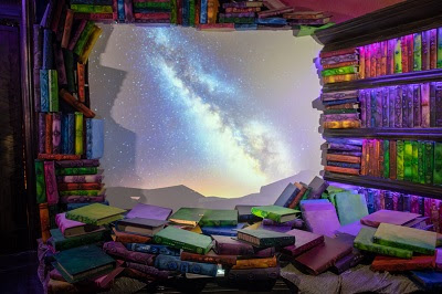 A grande biblioteca, com seus mais de três mil livros cenográficos diferentes, faz uma viagem pelo saber. A sala onde mora o conhecimento possui globos, pêndulos, uma água viva imantada, ilhas para interações e ainda se move a 180°, em um dos pontos altos do espetáculo.