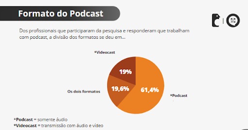 Na pesquisa, Gabriel Tripodi foi encarregado pela elaboração do questionário ao lado de Gabriel Andrade, do marketing da agência de notícias corporativas Dino. Ele observa que, ainda sendo minoria entre profissionais de comunicação do Brasil, o formato tem ganhado cada vez mais espaço. “Há mais de três anos, o termo era até pouco difundido no país. Agora, é possível afirmar que esse tipo de conteúdo está numa crescente, com mais de 44% dos comunicadores tendo, atualmente, relação profissional com podcasts”, comenta Andrade.