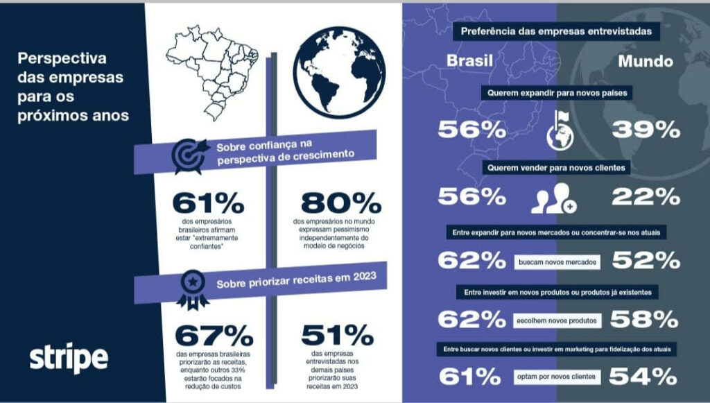 Uma pesquisa realizada pela Stripe com empresas de diferentes portes e setores revelou que 61% dos empresários brasileiros afirmam estar "extremamente confiantes” nas suas perspectivas de crescimento para este ano.