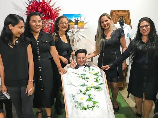 Alunos do curso de Organização de Eventos, ofertado pela Prefeitura Municipal de Manaquiri, fizeram uma atividade prática de encerramento do curso realizando uma Cerimônia Fúnebre com direito a morto fake, simulação de atendimento a parente passando mal e um brunch pra lá de caprichado para não deixar os convidados com fome no velório.