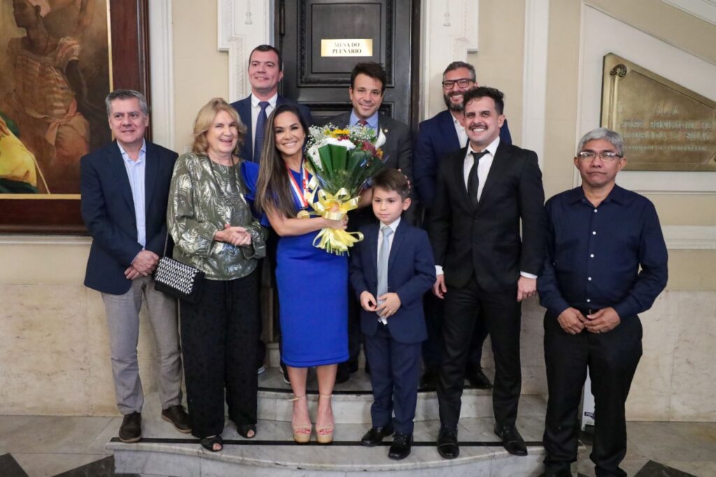 A homenagem é concedida aqueles que mesmo não nascidos na cidade, contribuíram de forma relevante com a sociedade local e com a democracia. Durante a solenidade, a âncora do SBT Rio ainda ganhou o Conjunto de Medalhas de Mérito Pedro Ernesto e uma homenagem do seu filho, Eduardo, de 10 anos.